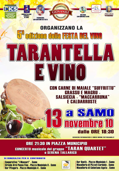 La 1^ Edizione di "Tarantella e Vino" con degustazione di Vino novello e prodotti tipici locali.